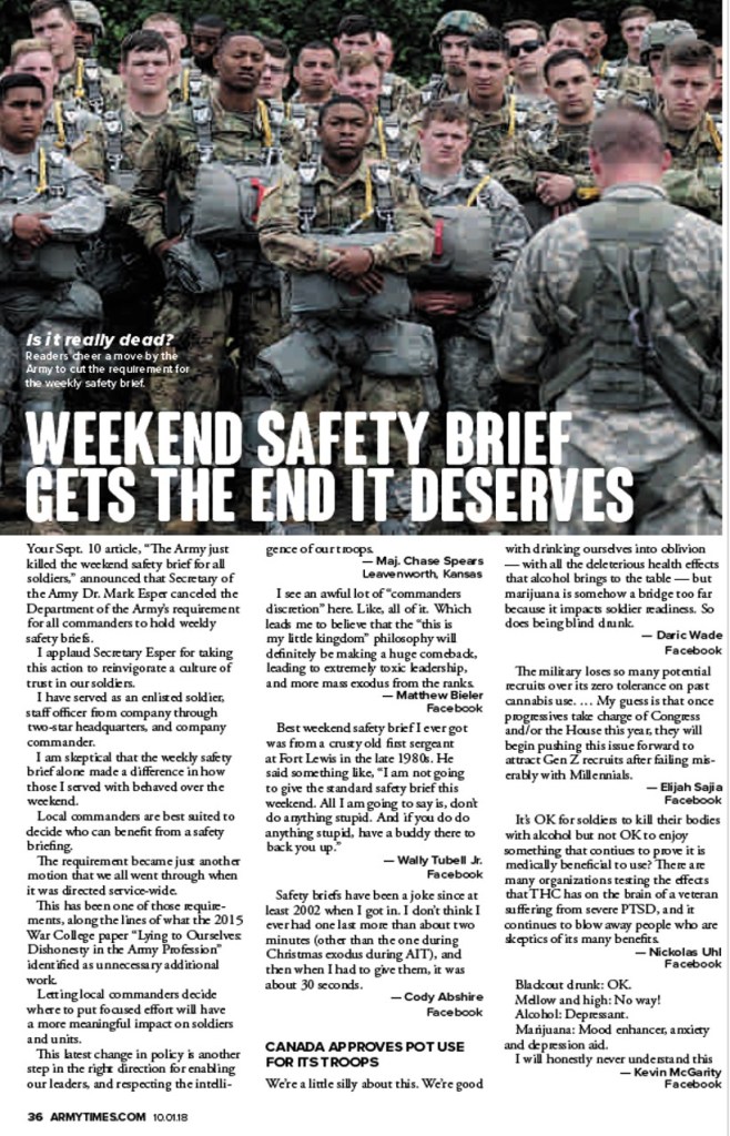 Army Times / October 1, 2018 / Weekend Safety Brief Gets the End it Deserves